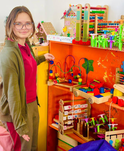 The school playroom, located within the KG building, serves both a protective and educational function. Students visit the playroom weekly and may also spend additional time there during the school day as their schedules allow. While the playroom is primarily a space for relaxation, fun, and social integration, it also offers a wide range of enrichment opportunities.